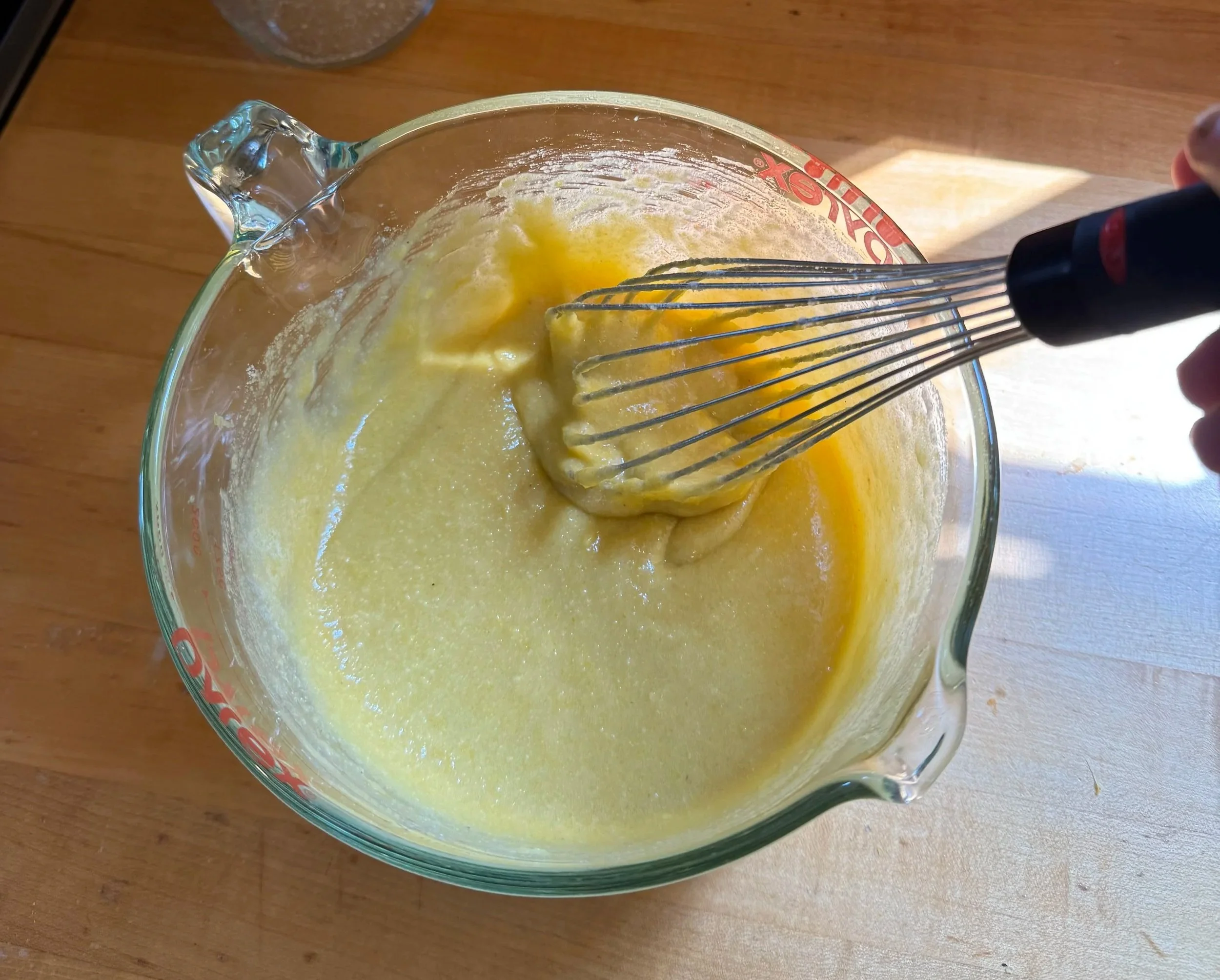 Mix wet ingredients thoroughly before adding Midtown Mix Almond Cake Base and combining thoroughly